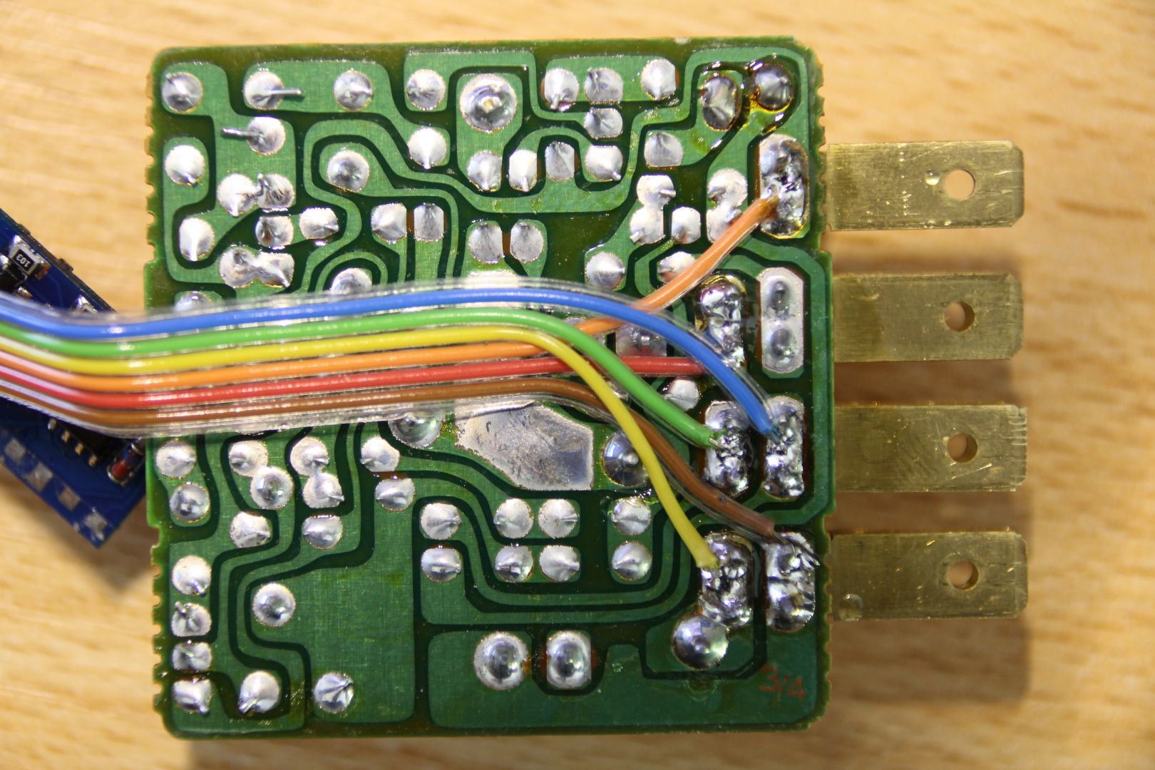 Wo ihr es hinbaut ist euch überlassen, ich habe das als angenehmste Stelle empfunden. Ihr müsst nur unbedingt aufpassen, dass ihr Kurzschlüsse etc. verhindert. Ich werde versuchen das Modul immer mit Teflonband zu umwickeln (wie auf dem Bild) um es zu isolieren.( Es ist zwar lackiert mit Plastik 400, allerdings war das Ergebnis nicht so isolierend wie erhofft. ( nicht mehr ) )