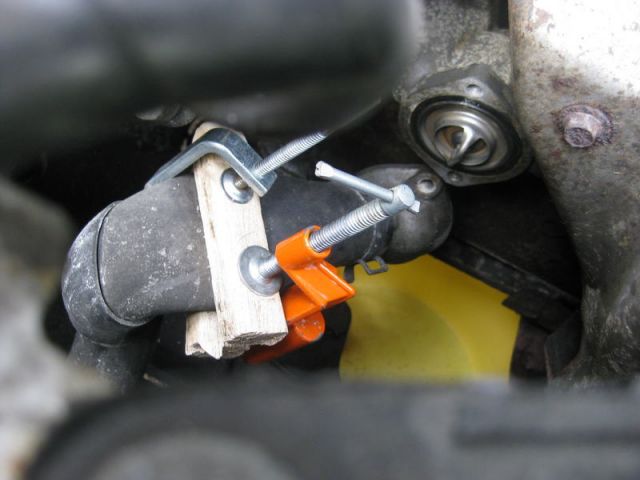 Hmm, konnte sehen, dass es nicht aus nem Schlauch/Stutzen kam, also musste es die Wasserpumpe sein. Noch mal ordenlich Wasser aufgefüllt und dann zur Werkstatt geschlichen.