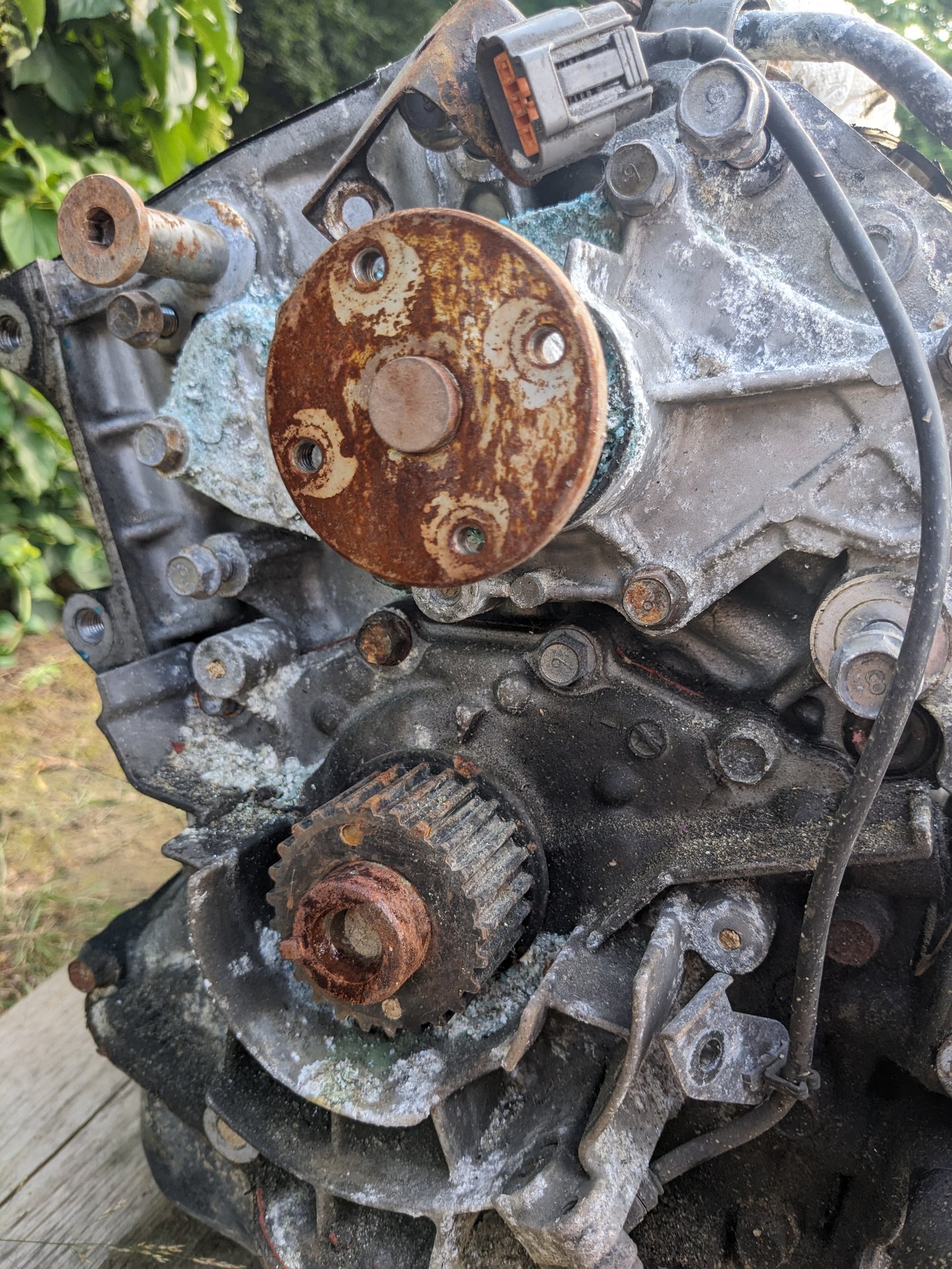 Ausgebaut hab ich den Motor jetzt schon, damit möglichst viel vorbereitet ist, bevor bei qwertzo dann einer seiner reinkommt - um die sehr begrenzte Zeit möglichst effizient zu nutzen.