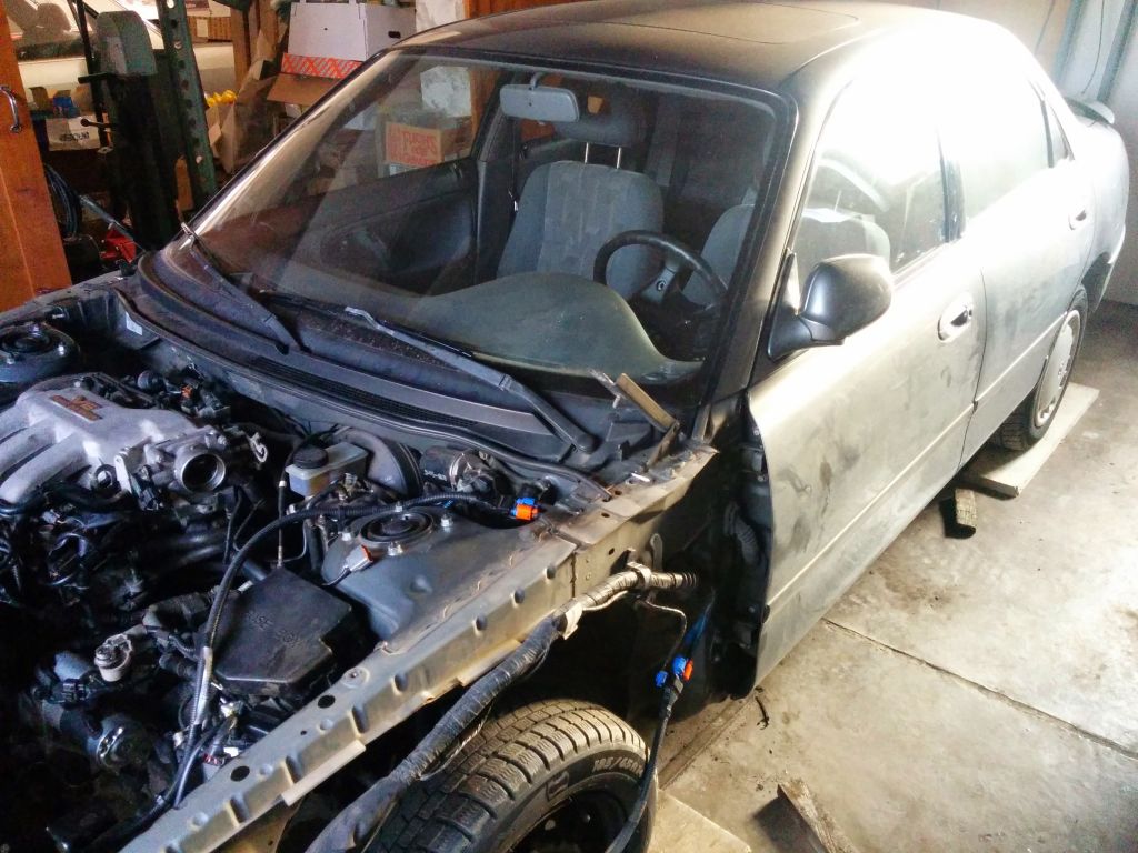 Nachdem alle Vorbereitung abgeschlossen waren kam es wieder zur "Hochzeit" und der V6 Motor wurde wieder eingebaut, mechanisch mit allen Motorlagern passt das problemlos.